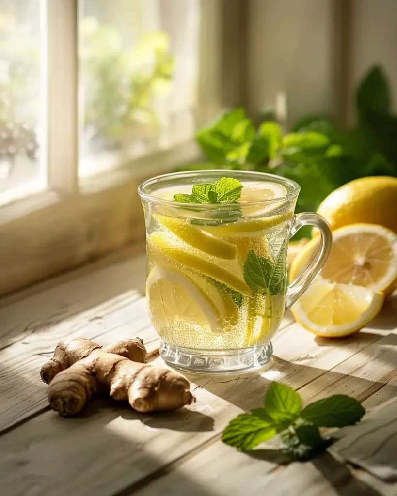 👉 Infusión de jengibre y limón, perfecta para mejorar la digestión sin medicamentos fuertes.