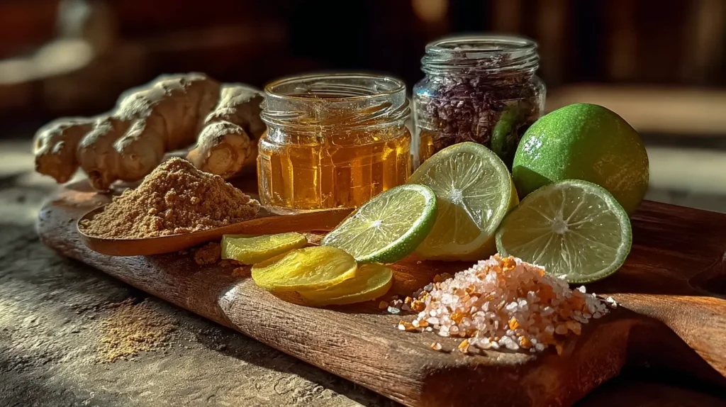 La clave de una buena receta de Mounjaro casero está en la calidad de sus ingredientes. Cada componente cumple una función específica: el limón limpia, la sal rosa remineraliza, el jengibre activa el metabolismo y el agua tibia ayuda a que el cuerpo absorba los nutrientes más rápido. En esta sección conocerás las proporciones ideales, posibles sustitutos y consejos prácticos para preparar una versión equilibrada y efectiva de esta bebida natural.
