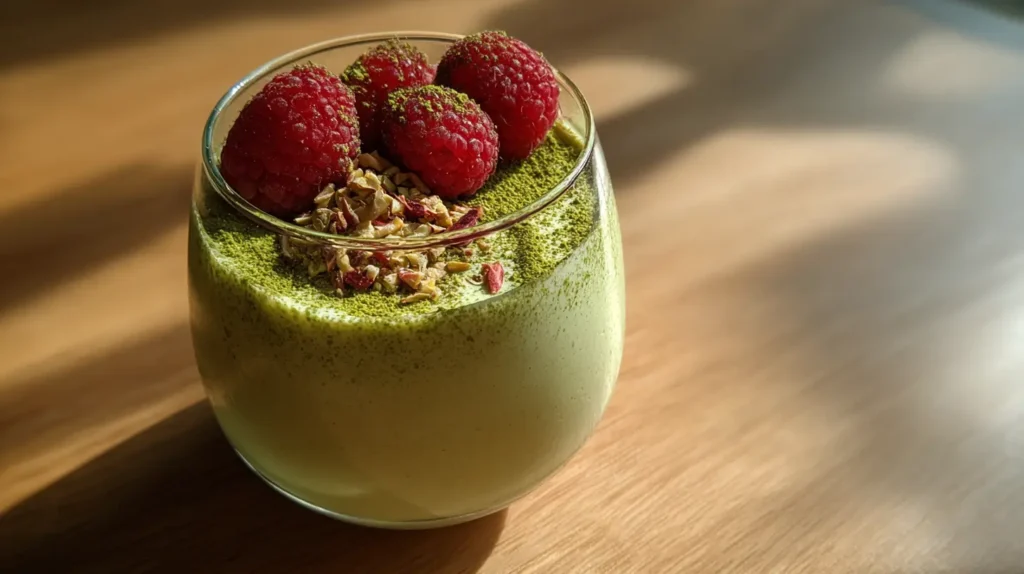 El último día del plan trae una recompensa deliciosa: un mousse proteico de matcha sin azúcar que combina sabor, textura cremosa y nutrición equilibrada. Esta receta es ideal para quienes buscan un postre saludable que ayude a mantener la saciedad y aporte proteínas de calidad. El matcha ofrece antioxidantes y energía natural, mientras que el yogur griego y la proteína vegetal favorecen la recuperación muscular. Es una de las recetas con matcha para bajar de peso más completas, perfecta para cerrar el ciclo detox con un toque dulce y sin culpas.