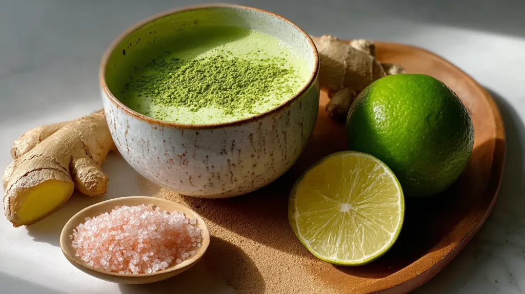 Receta de té matcha detox con limón, jengibre y sal rosa